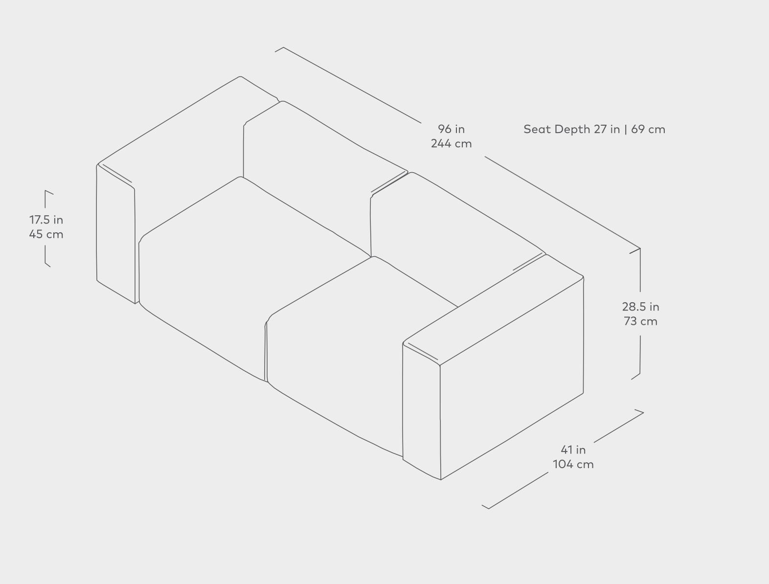 - Tight seat, back and arms are padded with a sterilized feather fill envelope.